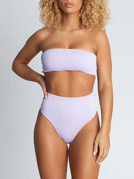Amata Ribbed Bandeau Bikini Bikini Sets Lilac